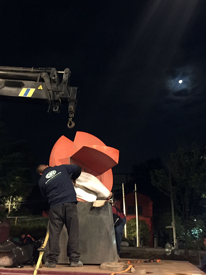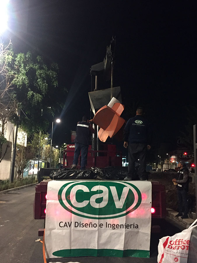 CAV estuvo a cargo de los trabajos de restauración, conservación y reubicación de 9 esculturas del artista plástico Sebastián, a saber, Puerta Candado, Tzompantli, Apofilita, Arcángel, Chac Mool Rectangular, Desequilibrio, Corral, Esfera Trece Naranja y Árbol de la Vida, que debieron retirarse de su sitio original por la ejecución del proyecto “Mejoramiento urbano y Mantenimiento Integral del Circuito Interior de la Ciudad de México”. Se elaboraron dictámenes del estado en que se encontraban las piezas, levantamientos topográficos, escaneos láser en 3D, calas arquitectónicas y análisis metalográficos; posteriormente se procedió a limpiar las piezas y se aplicó una capa de revestimiento de acero; por último se aplicaron las tonalidades originales correspondientes a cada una de las esculturas.