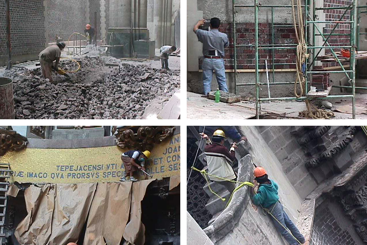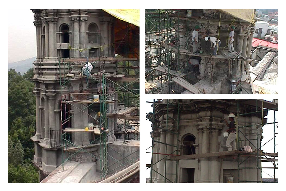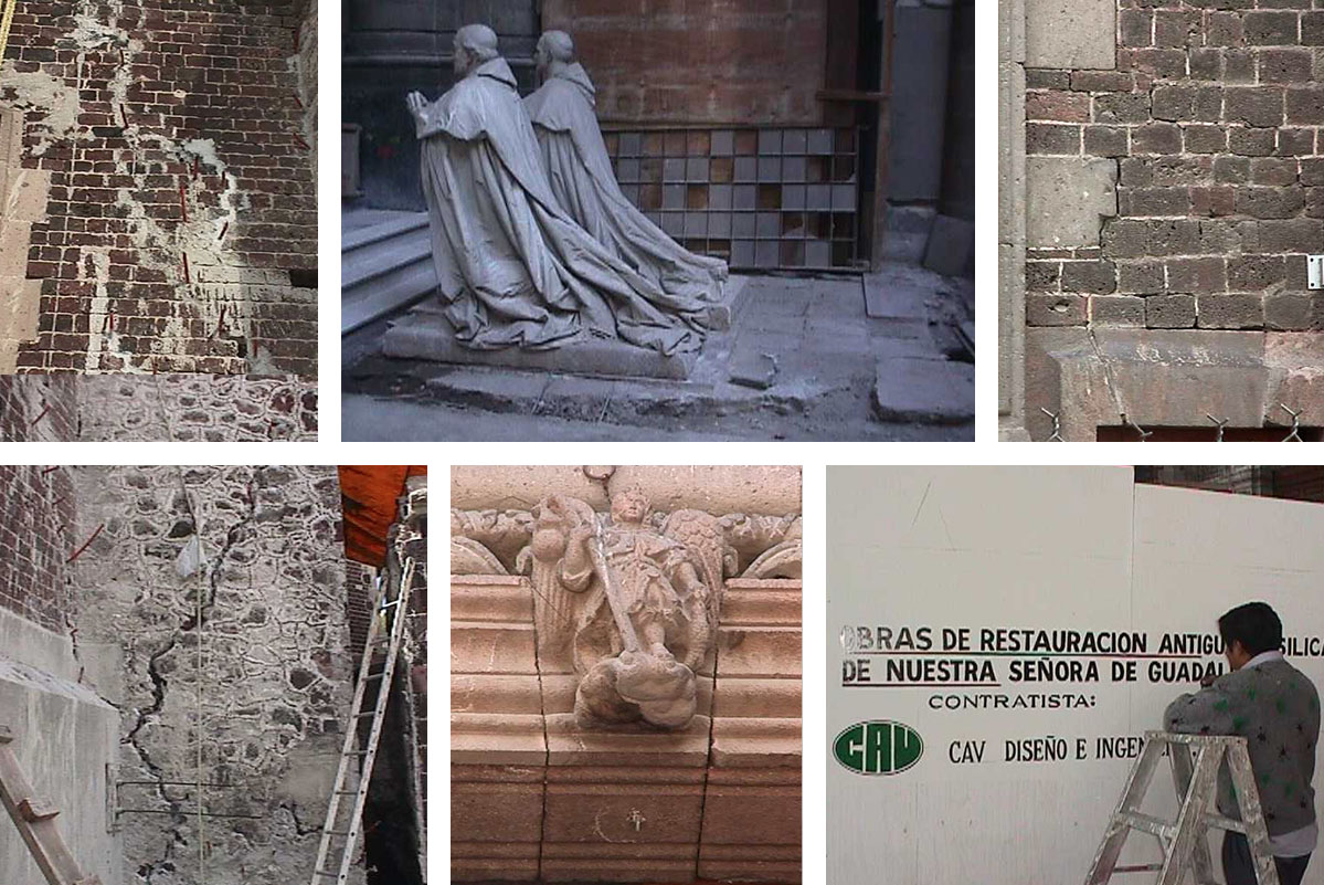 El equipo de CAV realizó una restauración integral del campanario y los portones de madera de la Antigua Basílica de Guadalupe. También estuvo a cargo de la renovación de instalaciones eléctricas e hidrosanitarias y de otros trabajos de consolidación y adecuación de la iglesia, como son la demolición y restitución de bóvedas, el desarmado y armado de torres, la colocación de mampostería, la inyección de grietas y la limpieza y conservación de un sinnúmero de columnas, frisos, nichos, campanarios, herrerías y ornamentos, entre otros.