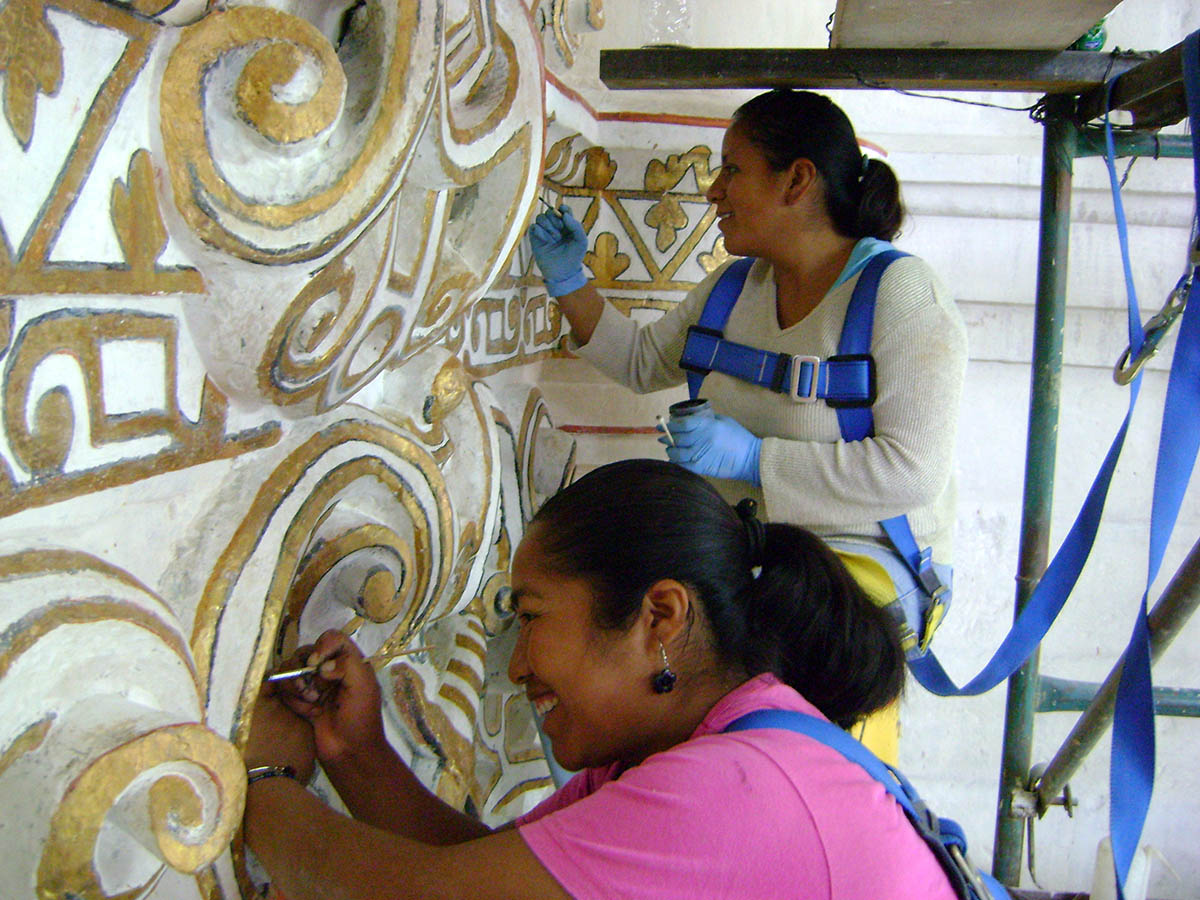 Este exconvento, hoy convertido en museo, fue construido en el siglo XVI y actualmente forma parte de la Ruta dominica de la Mixteca Alta de Oaxaca, reconocida por su gran valor arquitectónico. Liliana Olvera realizó los trabajos de conservación y restauración del intradós de la bóveda nervada del ábside, el arco triunfal y el enmarcamiento del presbiterio.