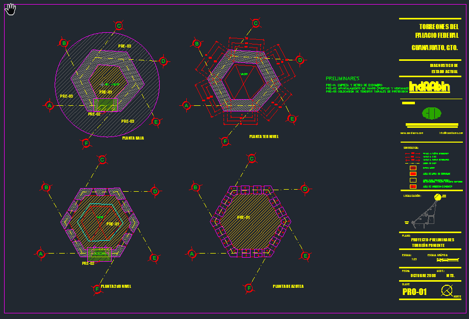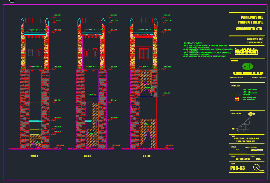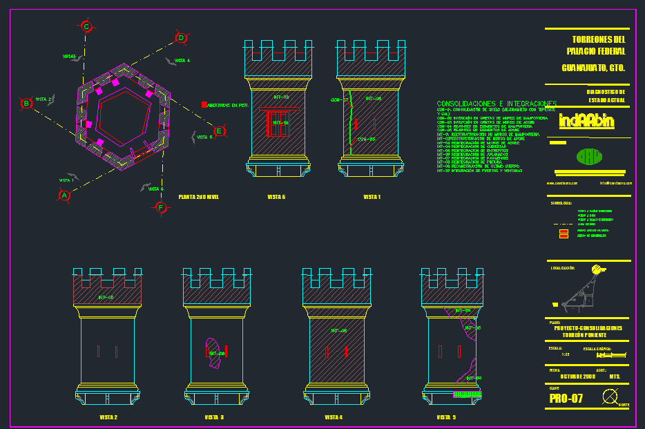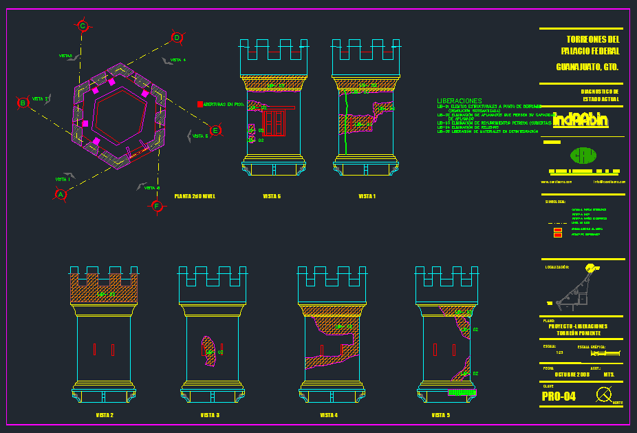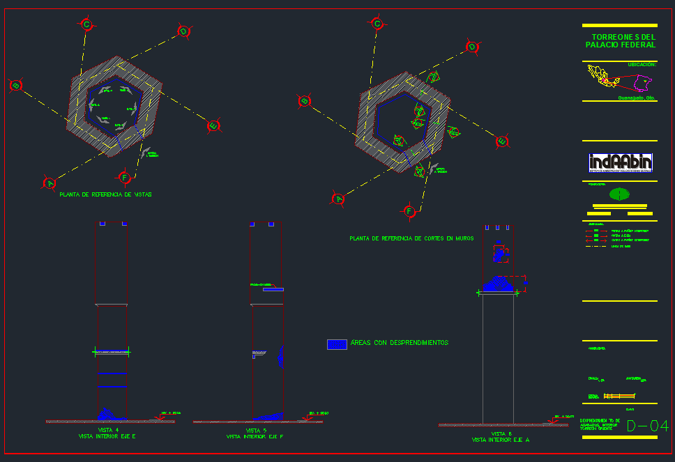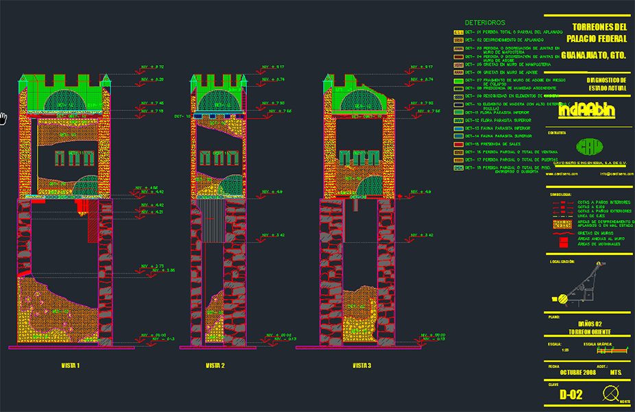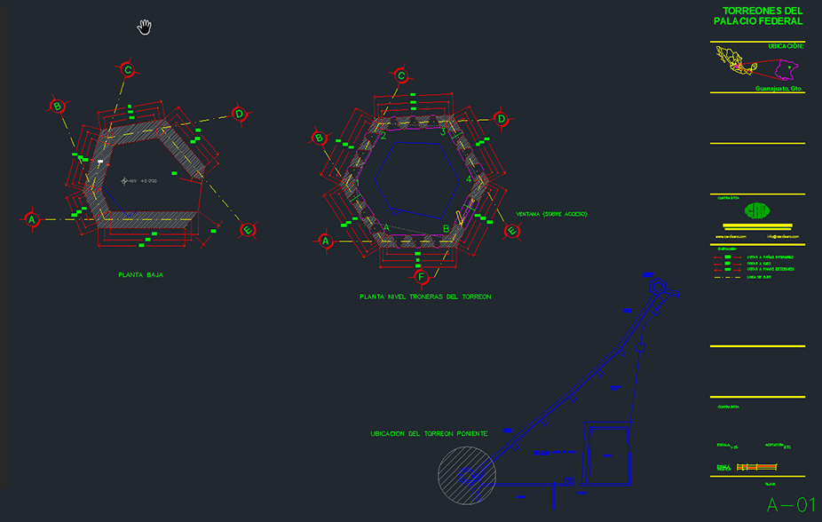 El Palacio Federal de Guanajuato data de la época virreinal y fungió como Casa de Moneda durante casi todo el siglo XIX. CAV realizó las obras de reestructuración, mantenimiento y restauración de los dos Torreones de este edificio; los trabajos consistieron en la sustitución de entrepiso y cubiertas, integración de banda de carbón, restitución de elementos faltantes y aplanados, así como aplicación de pintura. Para ello, se elaboraron bitácoras y reportes fotográficos.