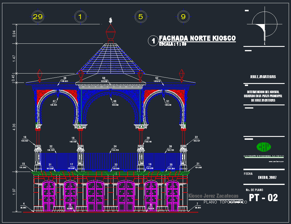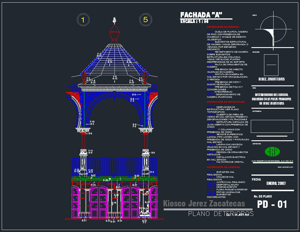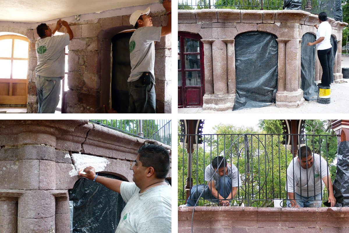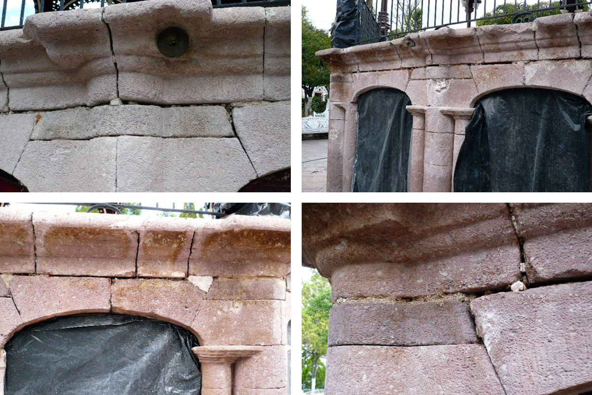 CAV estuvo a cargo de la restauración de este kiosco morisco, ubicado en el jardín Rafael Páez, centro de Zacatecas. Los trabajos consistieron en lavado de cantera, junteo y reintegración de juntas en exteriores e interiores; asimismo, se hicieron procesos de consolidación, hidrofugación y tratamiento de aceros, entre otras obras.