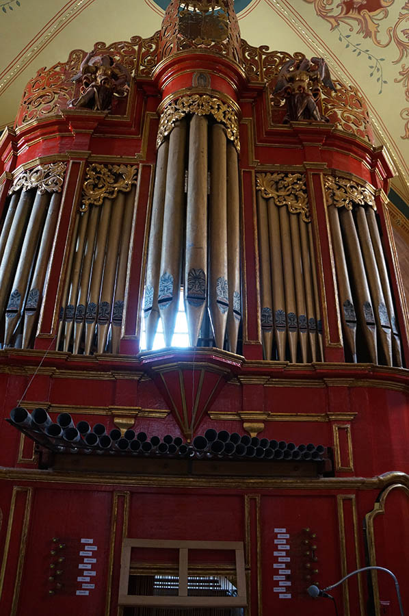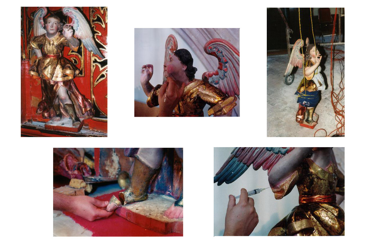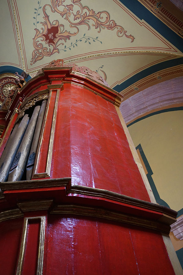 Los trabajos de restauración del mueble del órgano tubular del templo de Santo Domingo, estuvieron a cargo de Liliana Olvera y consistieron en realizar un inventario de elementos, el registro de los deterioros, la elaboración del proyecto de restauración, la restitución de elementos de madera, la eliminación de repintes y capa de protección oxidada, la limpieza de resane y reintgración y la limpieza y la consolidación y reintegración de las esculturas policromadas. En estos trabajos se incluyó un estudio de fluorescencias de rayos X así como análisis estratigráficos.